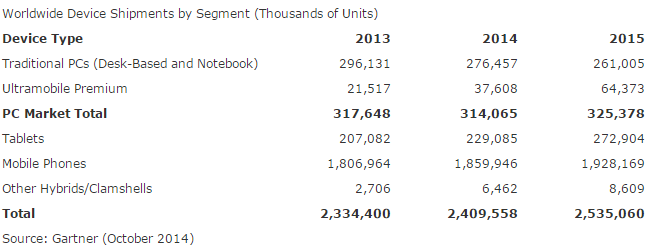 Gartner, 2014, Gartner Says Sales of Tablets Will Represent Less Than 10 Percent of All Devices in 2014, viewed 13 April 2015, http://www.gartner.com/newsroom/id/2875017]