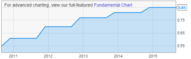 Ycharts (2014) MCD Dividends, accessed 21 July 2015, HYPERLINK "http://ycharts.com/companies/MCD/dividend" http://ycharts.com/companies/MCD/dividend