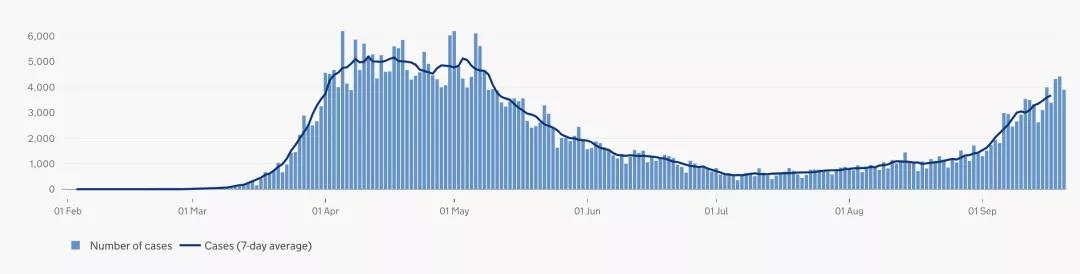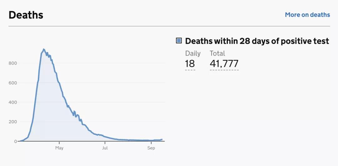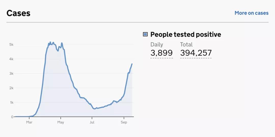 截止至2020年9月20日(周日)英國時(shí)間09:00,累計(jì)檢測結(jié)果量17,995,470次;累計(jì)確診394,257例(+3,899);累計(jì)病亡41,777例(+18)。
