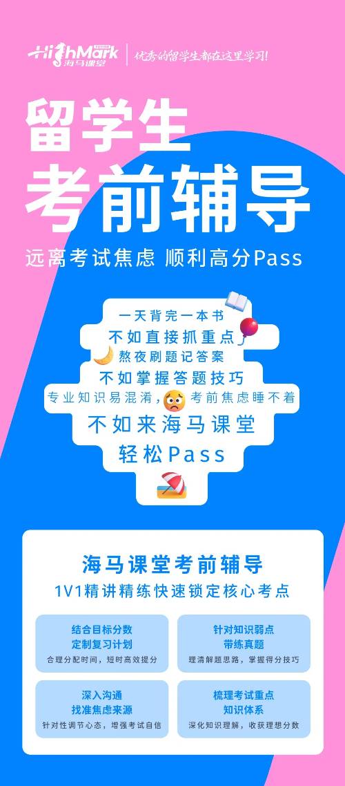 海馬中行業(yè)首推雙師模式,為留學(xué)生學(xué)業(yè)保駕護航。陪伴導(dǎo)師具有留學(xué)背景且教學(xué)經(jīng)驗豐富,懂學(xué)生痛點;教學(xué)出身的導(dǎo)師能提供專業(yè)學(xué)習(xí)規(guī)劃,精準避坑提升成績。該模式還為學(xué)生明確短期學(xué)期目標和長期畢業(yè)求職規(guī)劃,陪伴導(dǎo)師在線守護,讓留學(xué)之路清晰不迷茫。導(dǎo)師給予全面指導(dǎo),覆蓋學(xué)習(xí)、升學(xué)和就業(yè),毫無保留分享經(jīng)驗,助力學(xué)生全面發(fā)展。