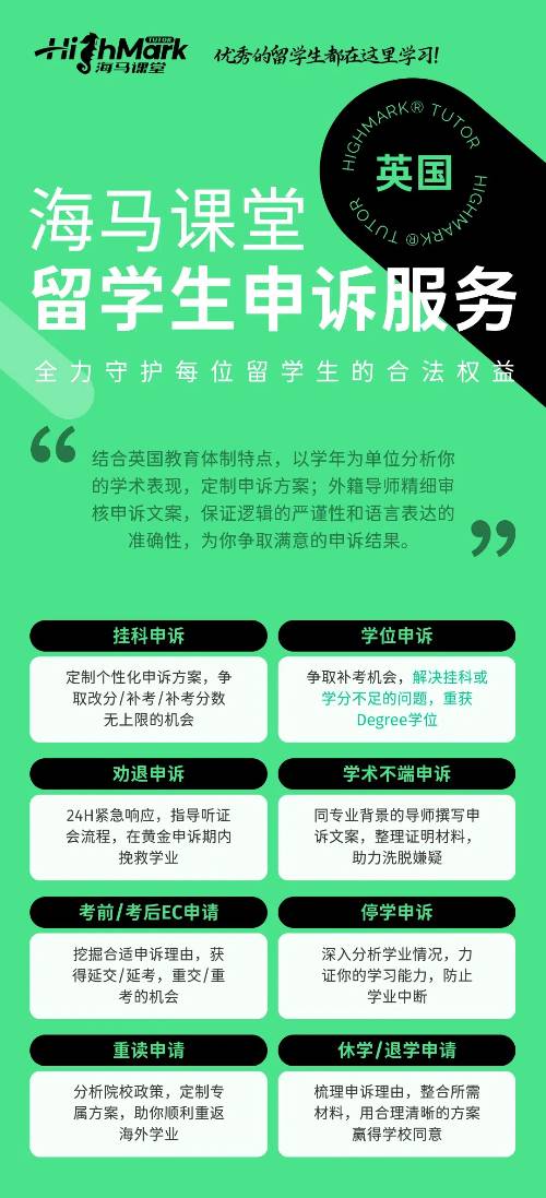 HighMark 申訴項(xiàng)目組最后叮囑倫敦國(guó)王學(xué)院的學(xué)生及家長(zhǎng)們,雖說(shuō)申訴程序看著有點(diǎn)繁瑣,但只要按規(guī)定來(lái),合理有效申訴,成功的可能性并不低。碰上難題別慌亂,冷靜應(yīng)對(duì),要是還有疑惑、拿不定主意的地方,隨時(shí)聯(lián)系我們。