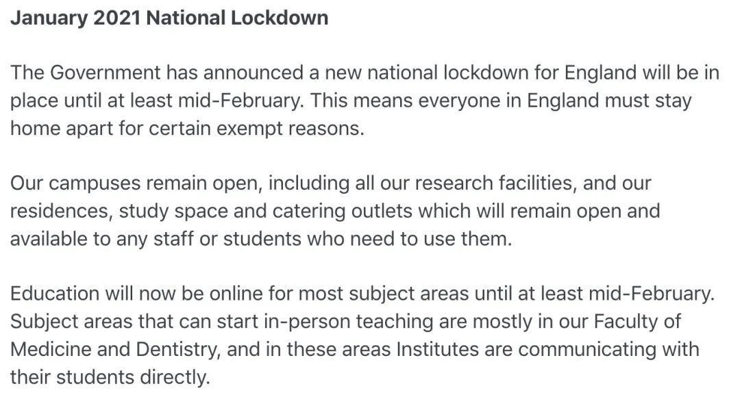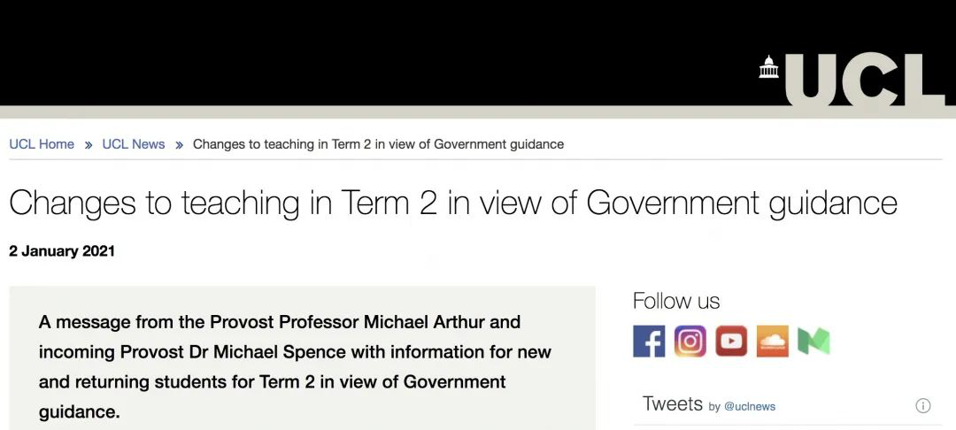 為了保證學(xué)生的安全,UCL讓學(xué)生最早2月中旬才可以返校,甚至有可能推遲至3月底之前返校。