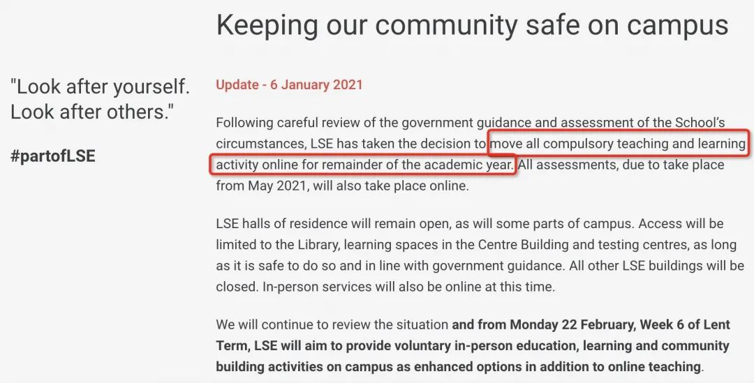 但是2月22日之后,LSE將為學(xué)生提供接受校園教學(xué)的選擇,學(xué)生可以自主選擇上課方式。