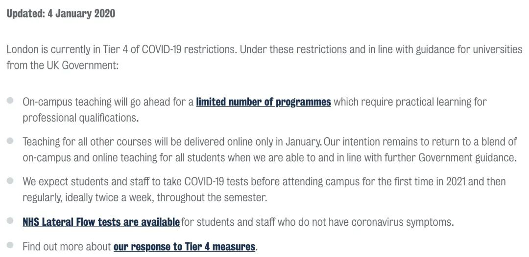 KCL的大多數(shù)課程,1月將在線進行,除了少數(shù)特殊課程,如醫(yī)學(xué)課程等。