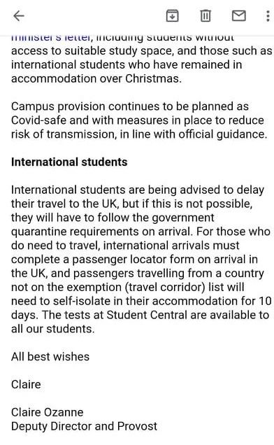圖|SOAS發(fā)給學(xué)生的郵件
