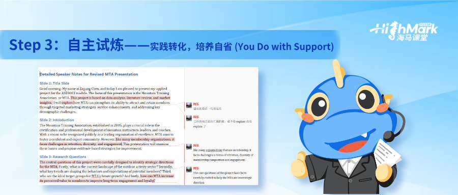 1.開始“放手”,引導(dǎo)獨(dú)立:讓學(xué)生嘗試自己完成部分內(nèi)容,如初稿、引用標(biāo)注等;