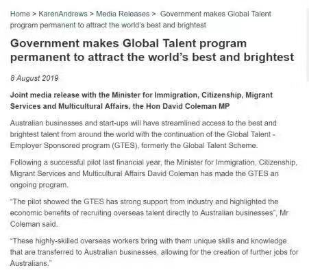 政府官宣這項(xiàng)吸引外國高技術(shù)人才來澳工作的專項(xiàng)簽證GTES在過去一個(gè)財(cái)年里試行成功,正式進(jìn)入澳洲的永久移民項(xiàng)目行列。