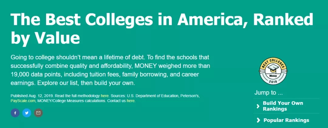 為了找到最具性價比的學校,Money采用大數(shù)據(jù)分析,包括學費,家庭借貸和職業(yè)收入等,共參考26項因素,對700多所大學進行排名。