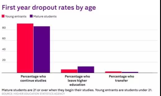 另外,數(shù)據(jù)還顯示:21歲以下上大學(xué)的同學(xué)會(huì)比21歲以上的學(xué)生輟學(xué)率低。